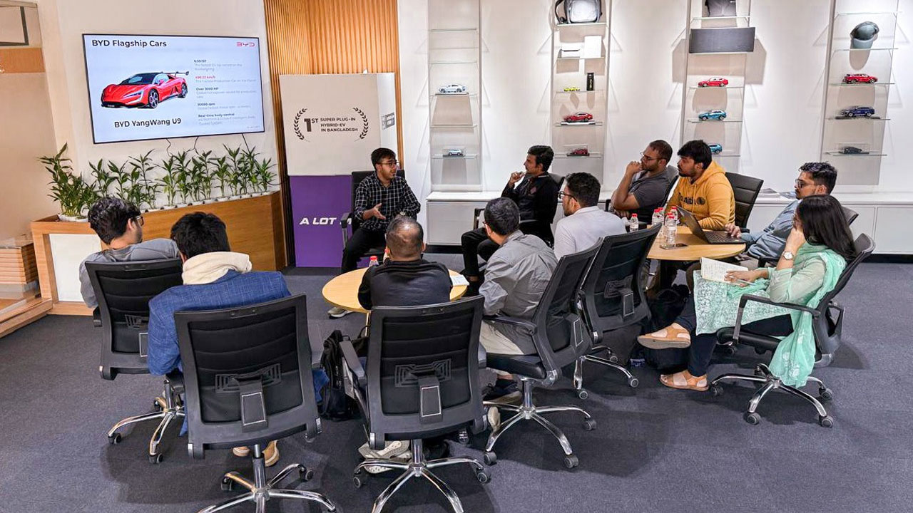 The curriculum, covering modern mobility topics including EV powertrains and hybrid systems, was led by BYD Bangladesh’s in-house trainer and product specialist, Md Rezwan Rahman, alongside product development executive Nakibul Islam.